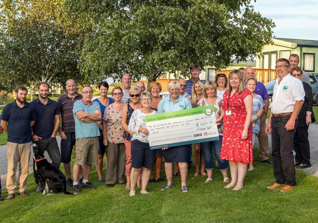 The cheque for £2,200 was officially handed over to Debbie Gibbs of the Great North Air Ambulance Service at a special ceremony held on the park.